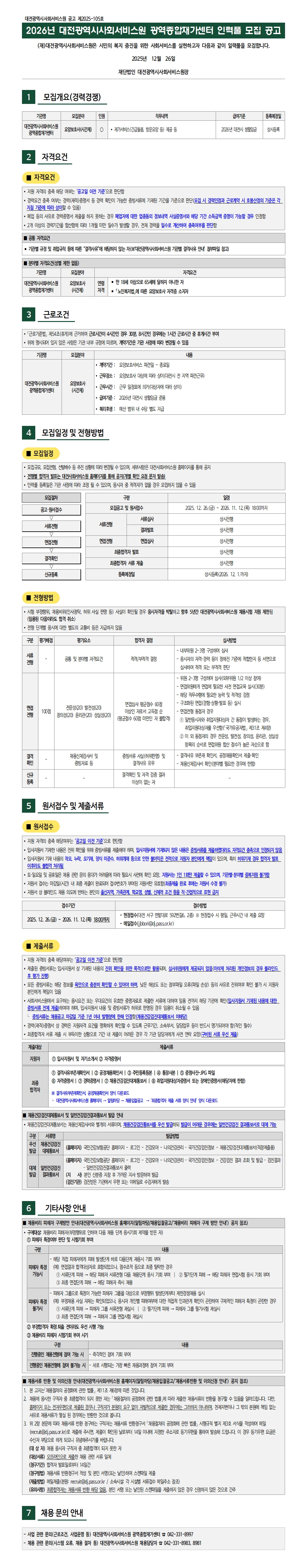 [제2025-105호] 2026년 대전광역시사회서비스원 광역종합재가센터 인력풀 모집 공고
