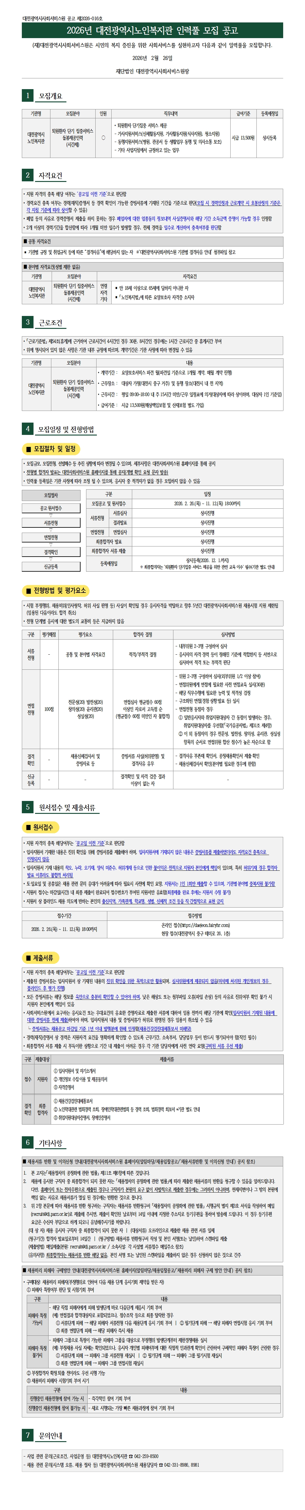 [제2026-016호] 2026년 대전광역시노인복지관 인력풀 모집 공고